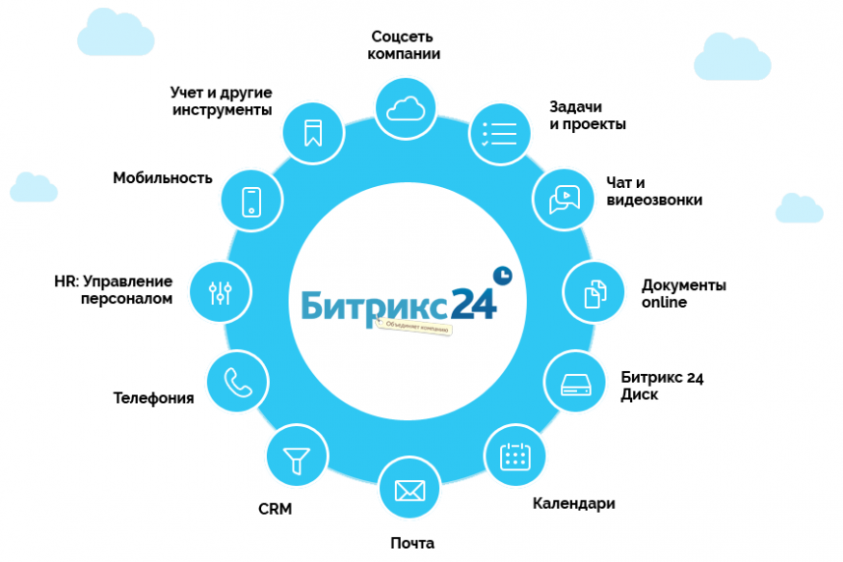 CRM: возможность регистрации взаимодействий с потенциальными клиентами (лиды), сопровождения сделок, включая присвоение статуса (канбан), автоматизацию задач, а также интеграцию с почтой (автоматической привязки писем к контактам, создания лидов и маркетинг-рассылок).